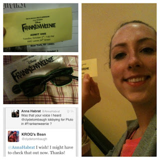 I snagged 2 tickets to a free screening of Frankenweenie in 3D that Kasia and I attended happily! The movie is great and just what I needed to get me into the Halloween spirit!